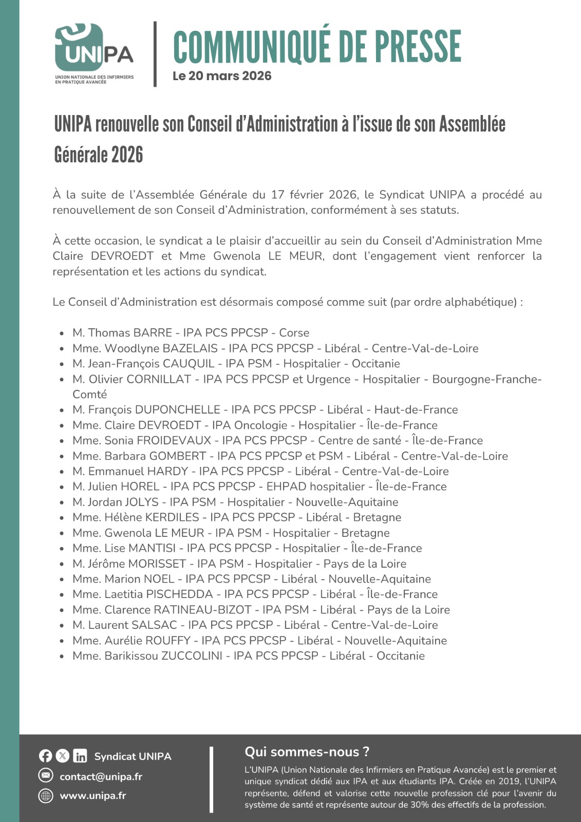Communiqué de presse 2026
